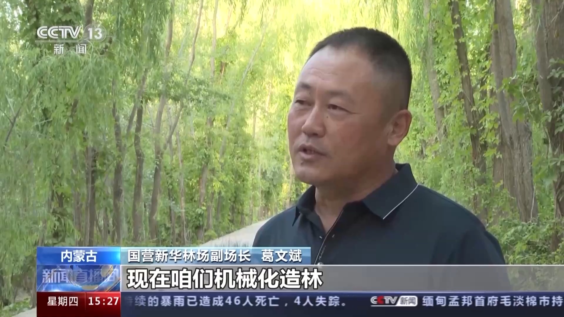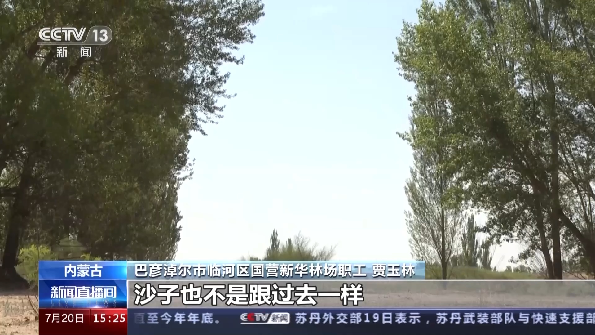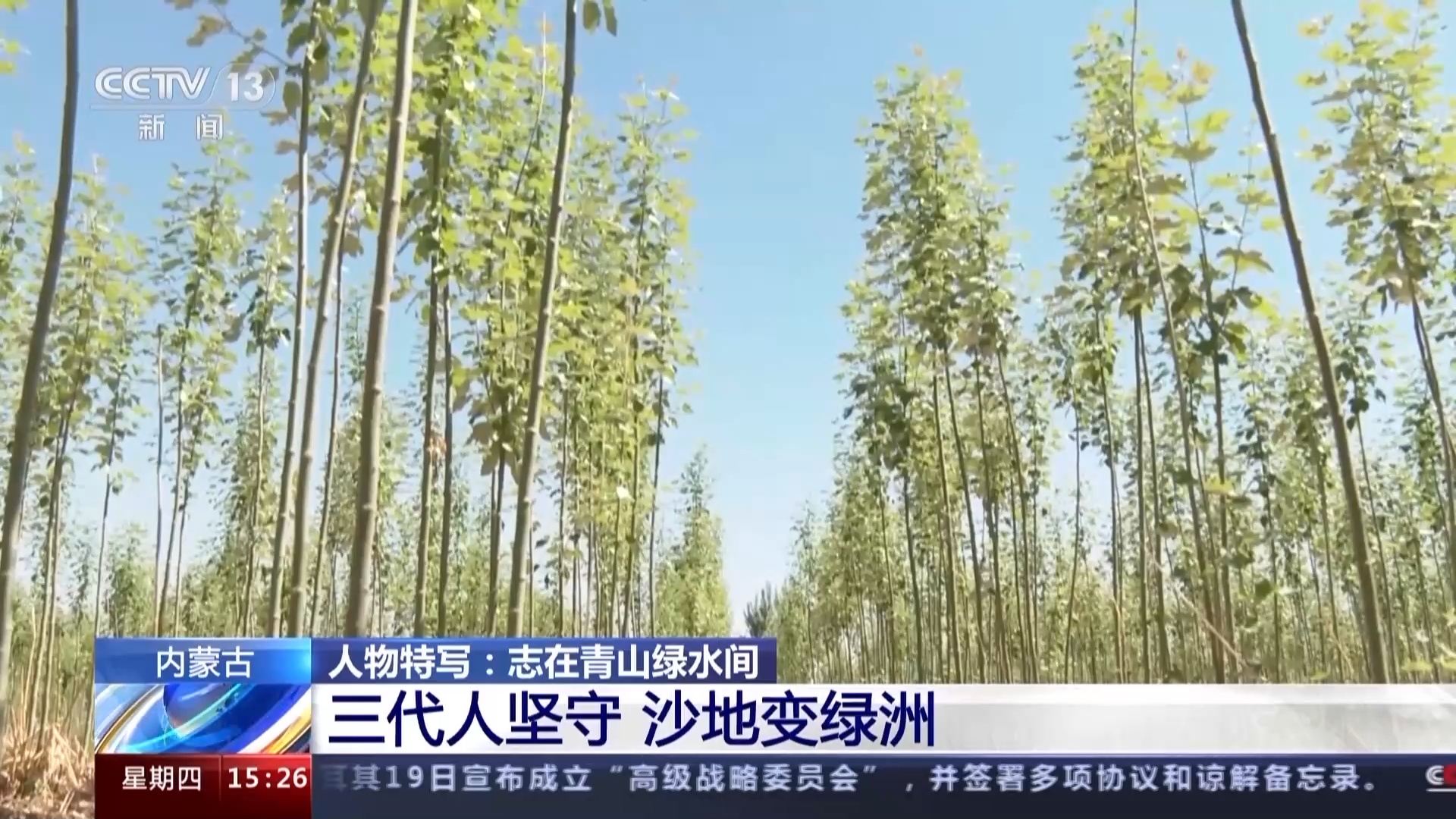内蒙古巴彦淖尔市临河区国营新华林场职工 贾玉林:我和我父亲这两辈人负责栽,(到)他们手上管护,不让羊啃了,不让起火了,森林覆盖面积也增大了,我觉得也挺欣慰。