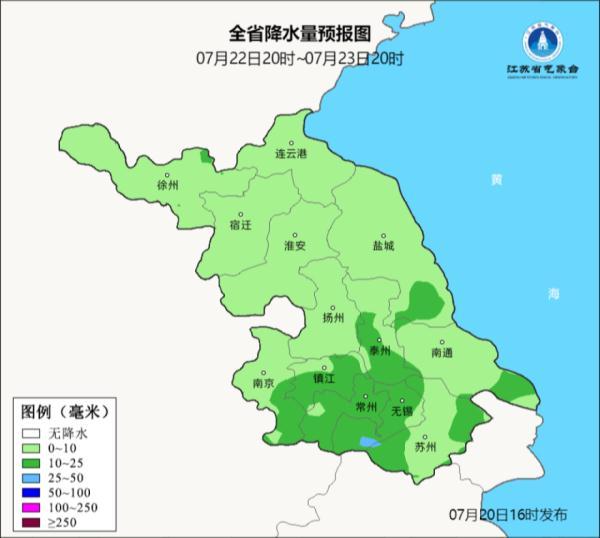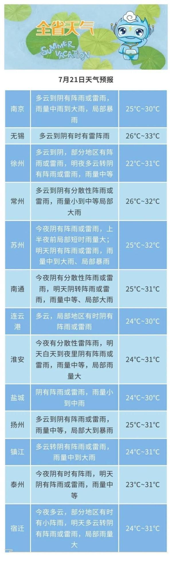 最低温度:苏南地区25℃左右,其他地区23~24℃。