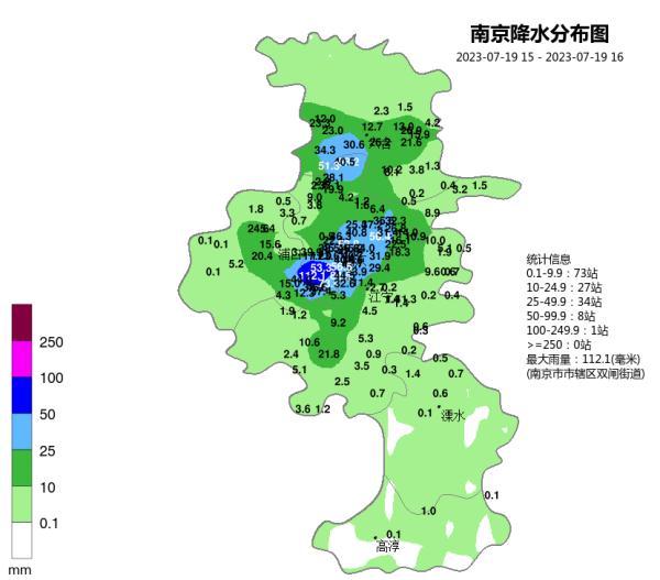 其中双闸街道达到112.1mm