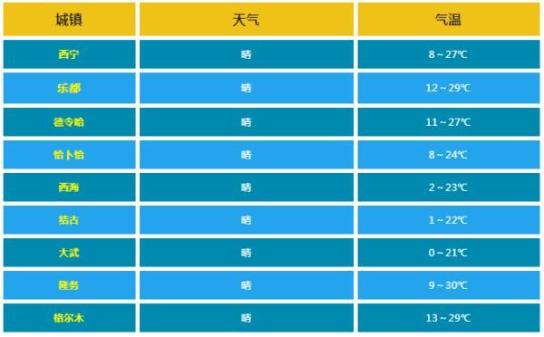 7月22日20时~7月23日20时:海东南部、海北大部、黄南、玉树、果洛及天峻有阵雨或雷阵雨,其中天峻、刚察、杂多、治多部分乡镇有中雨,省内其余地区晴或多云。