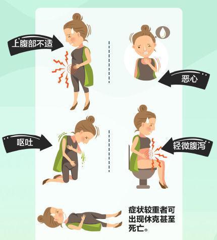 主要临床表现及体征为上腹不适、恶心、呕吐、轻微腹泻,严重者可出现黄疸、肝肿大、呕血、惊厥、抽搐甚至休克死亡。酵米面中毒没有特效药物,救治难、病死率高达40%-100%。