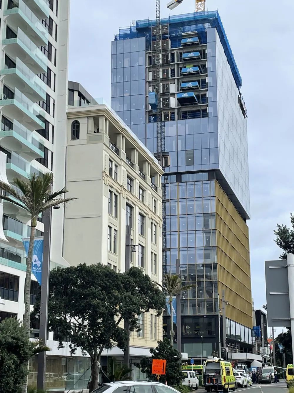 20日早上7时22分,警方接到了第一通报警电话,称有持枪者在皇后街上的大楼里开枪。据此次枪击案的幸存者讲述,事发的在建大楼共有21层,枪手“挥舞着枪一层一层地跑上楼梯”,似乎在“找人”。他一边往高层移动,一边用枪指着工人们说着“上楼,上楼”,并威胁称如果不按他说的做,就会开枪。事后有目击者表示听到了8声枪响。