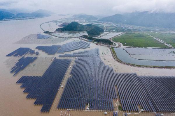 6月29日,位于浙江象山的滩涂渔光互补光伏项目正式并网运行发电。新华社记者 徐昱 摄