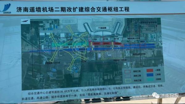 按照国家批复,济南机场二期改扩建工程总投资近700亿元,其中机场工程439亿元,是山东民航史上规模和投入最大的机场建设项目。主要建设内容包括:新建2条3600米跑道,飞行等级升至4F最高等级,满足民航现役所有机型保障需要;新建60万平方米和T2航站楼、38万平方米综合交通中心,引入济滨高铁和3条地铁。建成后济南机场将集成空港、高铁、轨道交通、高速公路、城市快速路等多种交通方式于一体,实现零距离换乘、无缝化衔接,成为“国内领先、国际一流”的大型区域航空枢纽。该项目被交通运输部列为全国航空主导型智慧综合客运枢纽示范工程。