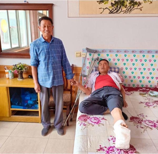 获救上岸后,惊魂未定的严肃不断感谢老同学闫宁和众乡亲的搭救之恩,却发现闫宁的左脚已肿成了“面包”。他急忙让家人将闫宁送往医院治疗。经检查,闫宁左足第5跖骨基底部骨折。回家换上衣服的严肃赶到医院看望闫宁,几天后又带他进行了复查。