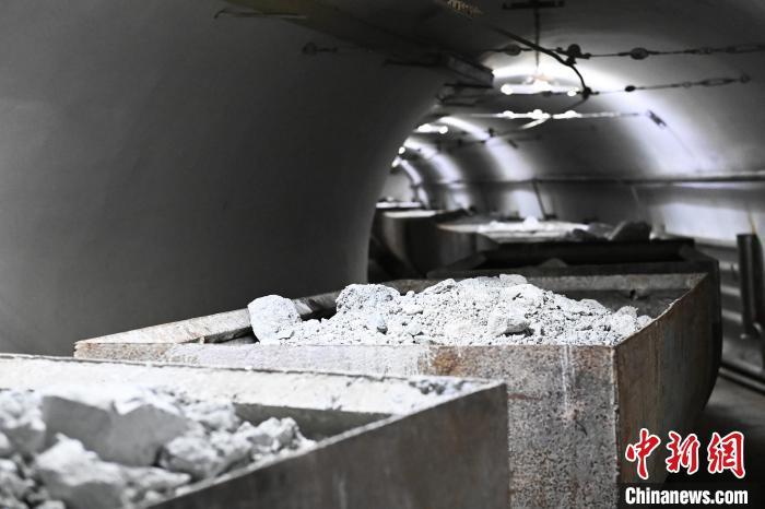 甘肃省金昌市金川公司龙首矿内,拉满矿石的有轨电机车有序前进。(资料图)中新社记者 李亚龙 摄