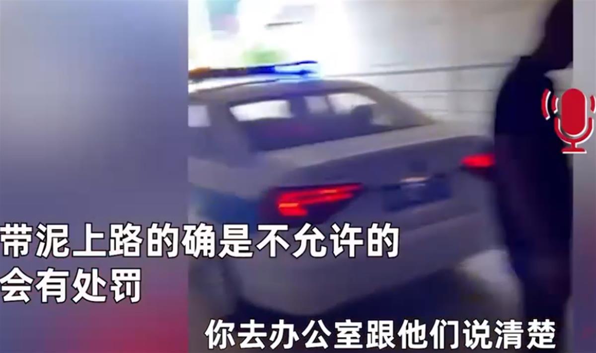 执法人员表示,轮胎不让带泥(来源:视频截图)