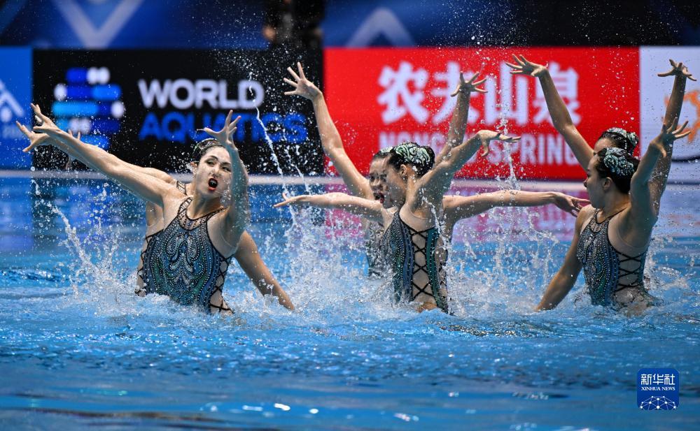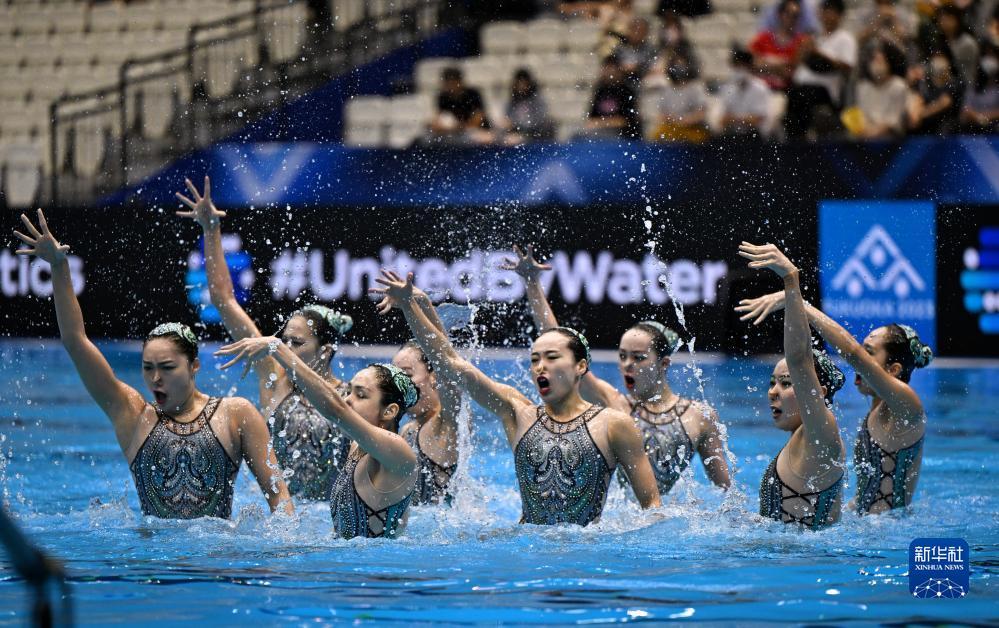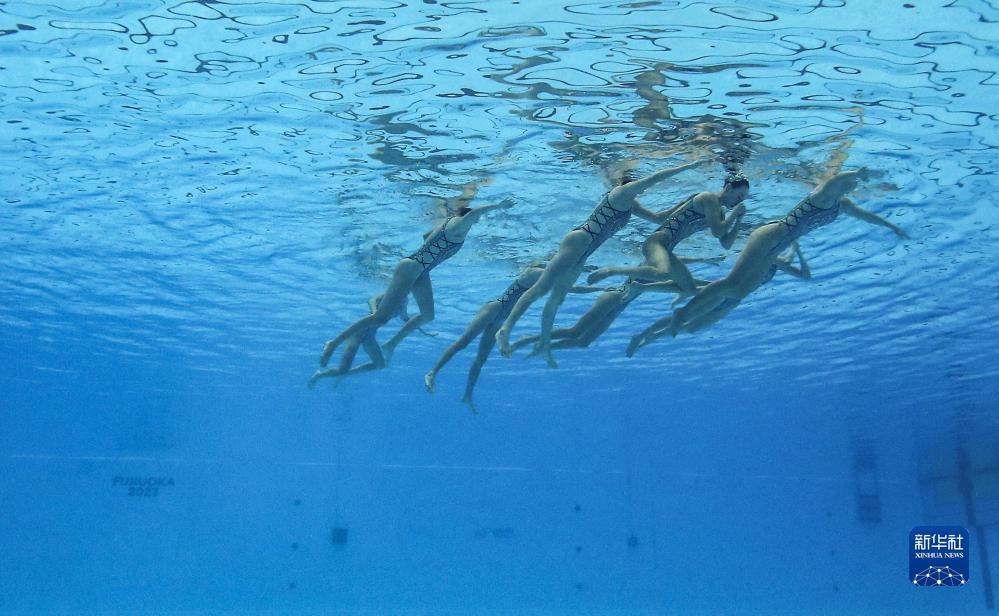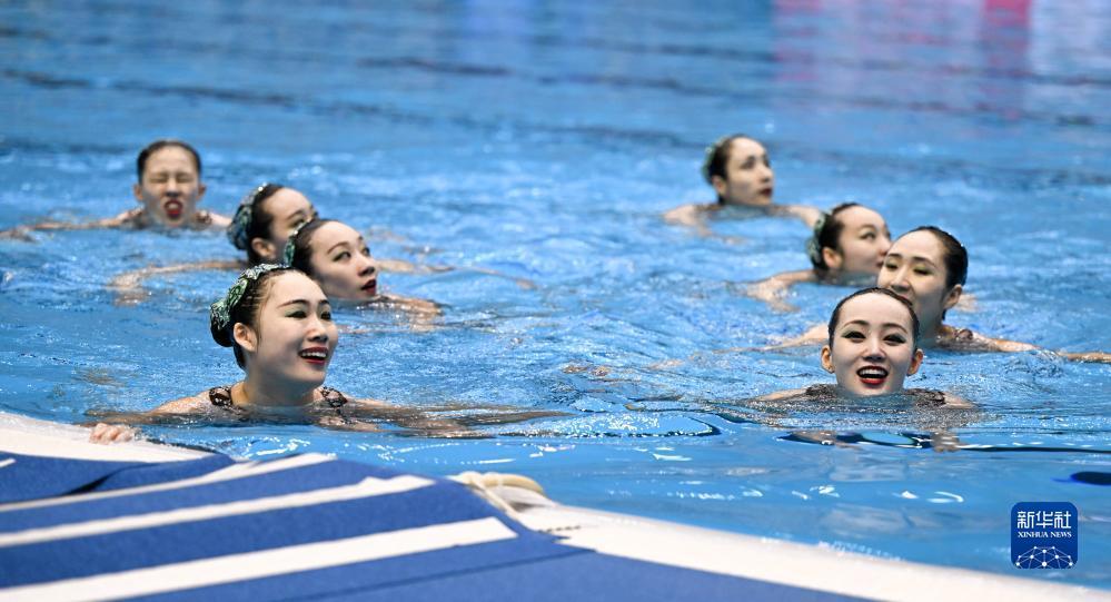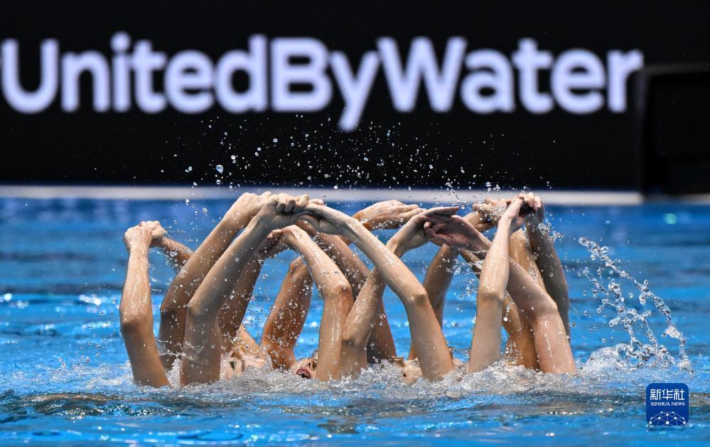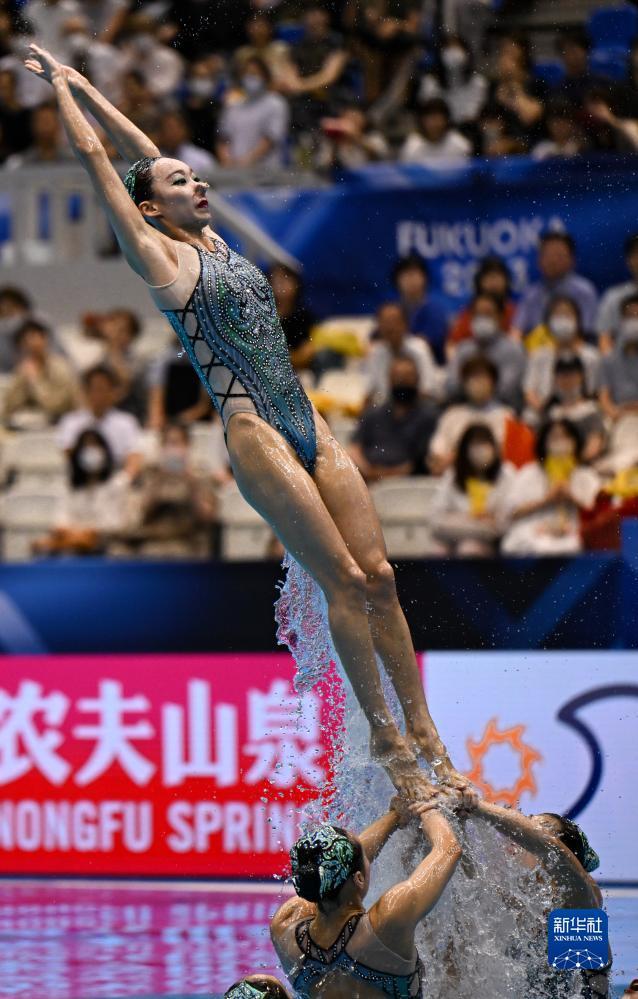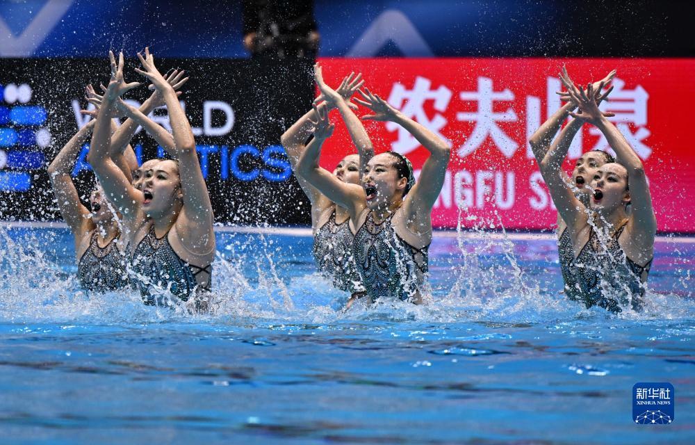 当日,在日本福冈举行2023年世界游泳锦标赛花样游泳集体自由自选决赛中,中国队以329.1687分的成绩获得冠军。