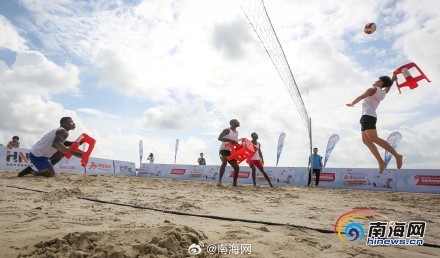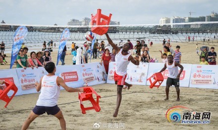 7月21日,海南文昌。中国女排名将刘晏含在海南“村VA”现场尝试了一把板凳排球,体验海南排球文化的独特魅力。板凳排球这种“花样”打法,你想不想也来尝试一下?(记者刘洋 其余为资料图)