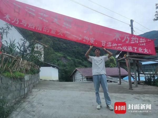 “从7月15日下午,我查到录取信息并在朋友圈发了消息后,就有很多人给我们家打电话,大部分都是恭喜,或是问教育经验的,也有很多媒体要来采访。”木乃约热是一名典型的彝族少年,热情开朗,他告诉封面新闻记者,家门口这条横幅,是他和哥哥共同的好友送来的。