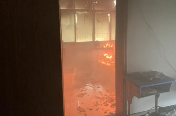 室内火光成片、浓烟滚滚