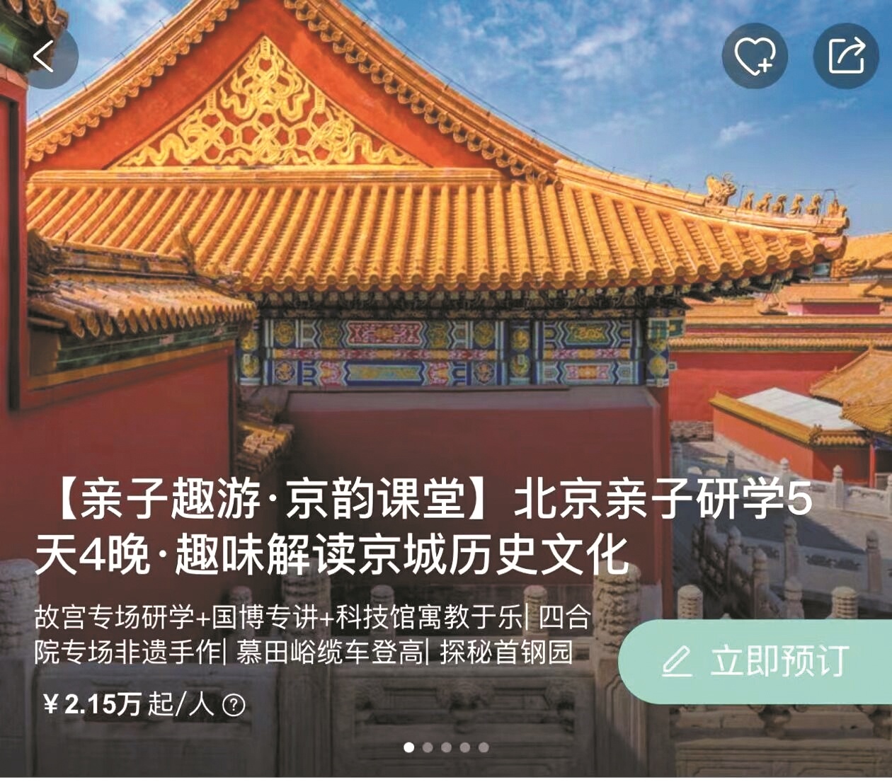 某研学团收费2.15万元起/人 图片来源:某旅游APP