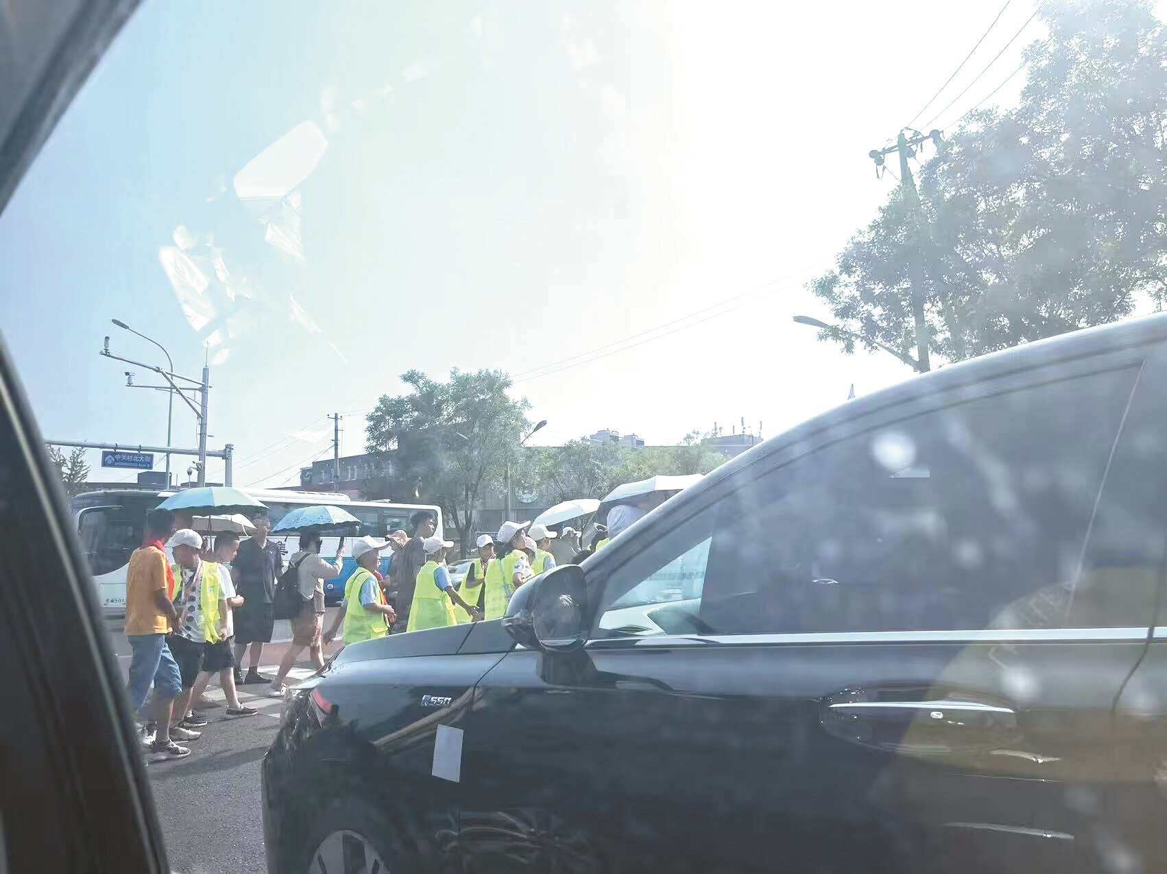 清华大学门口学生团排队过马路 采访对象供图