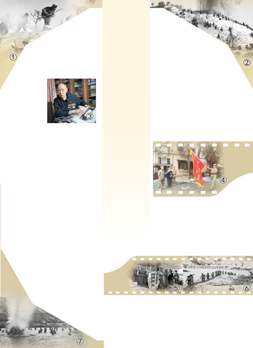 图①:志愿军战士在打退敌人进攻后,冒着风雪发起了冲锋。 张崇岫摄 图②:志愿军战士歼灭守敌。 张崇岫摄 图③:张崇岫在家中接受采访。 人民网记者 张力洋摄 图④:张崇岫向“新兴里战斗模范连”战旗敬礼。 许 国摄 图⑤:为“杨根思连”授旗。 张崇岫摄 图⑥:志愿军战士向敌军方向挺进。 张崇岫摄 图⑦:志愿军战士涉江追击敌人。 张崇岫摄 |