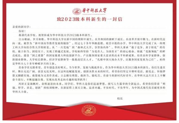 华中科技大学2023年录取通知书