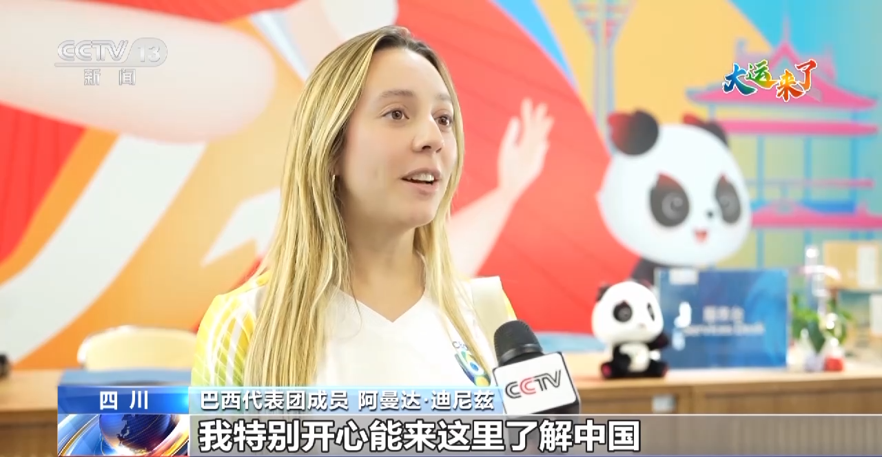 巴西代表团成员 阿曼达·迪尼兹:中国真是个漂亮的国家,我特别开心能来这里了解中国、感受文化,认识大家。这里的食物很美味,城市也很漂亮。成都让我印象太深刻了。