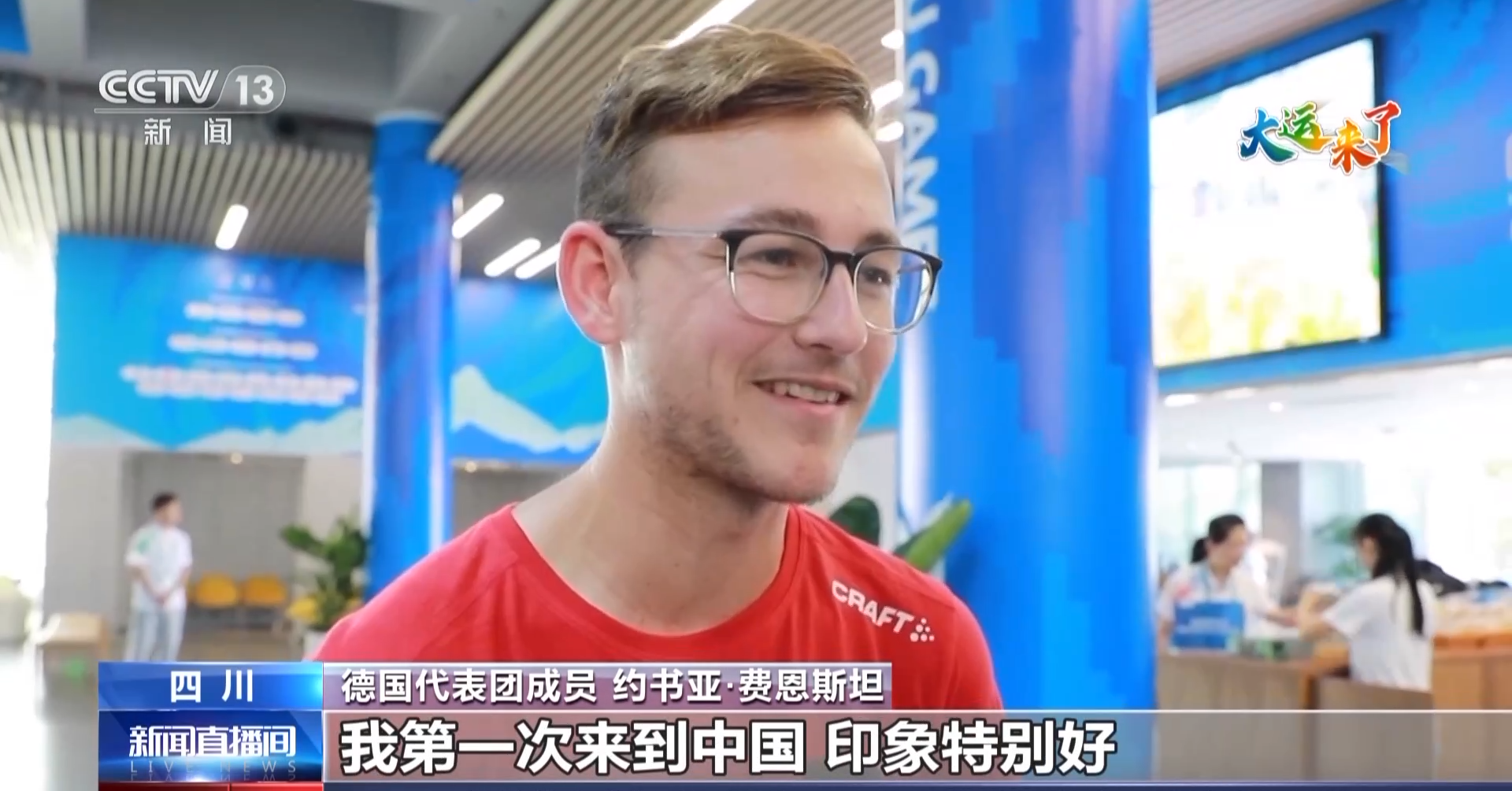 德国代表团成员 约书亚·费恩斯坦:对我来说真的是全新的体验,我第一次来到中国。印象特别好,大家都很热情,还有特别有意思的高科技产品,太有意思了。都说成都是大熊猫的家,我们也一定要看看大熊猫,享受在这里的时光。