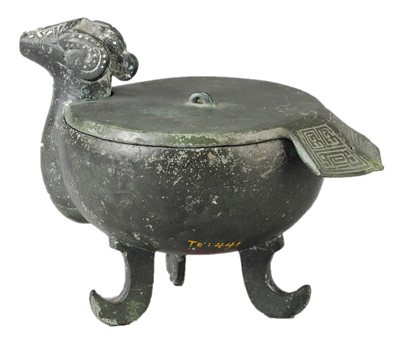 春秋三足羊首铜尊。安徽楚文化博物馆供图