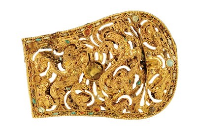 东汉嵌松石镂空龙纹金带扣。安徽楚文化博物馆供图