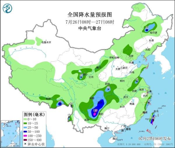 预计25-27日,四川、重庆、贵州、云南北部、湖北西部、西藏东南部等地有中到大雨,四川中南部、重庆南部、贵州北部、云南东北部等地的部分地区有暴雨,局地大暴雨。