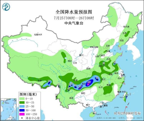 今天,重庆中南部、四川南部、云南东北部、贵州北部、湖南西北部、湖北西部以及江苏北部、西藏东南部、台湾岛东部等地的部分地区有大到暴雨,其中,重庆东南部、四川南部、贵州北部等地局地有大暴雨(100~150毫米);上述部分地区伴有短时强降水,局地有雷暴大风等强对流天气。中央气象台今晨继续发布暴雨蓝色预警。