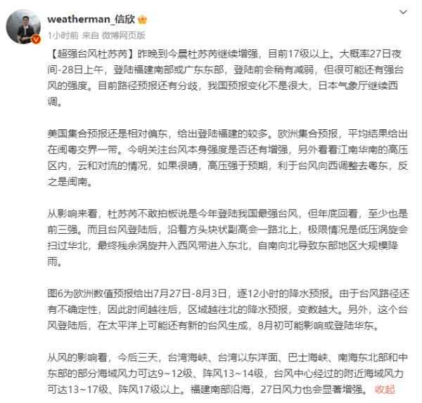 从影响来看,杜苏芮不敢拍板说是今年登陆我国最强台风,但年底回看,至少也是前三强。而且台风登陆后,沿着方头块状副高会一路北上,极限情况是低压涡旋会扫过华北,最终残余涡旋并入西风带进入东北,自南向北导致东部地区大规模降雨。