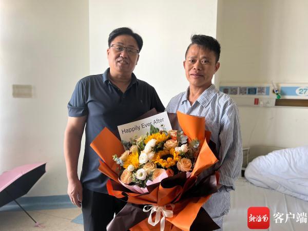 7月22日下午,海南省爱心社工志愿者协会会长张毅到医院看望王哲圣,为其送去鲜花和爱心捐款。记者 王洪旭 摄