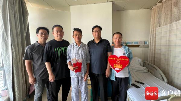 7月22日下午,海南省爱心社工志愿者协会会长张毅和协会多位志愿者一起到医院看望王哲圣,为其送去鲜花和爱心捐款。记者 王洪旭摄