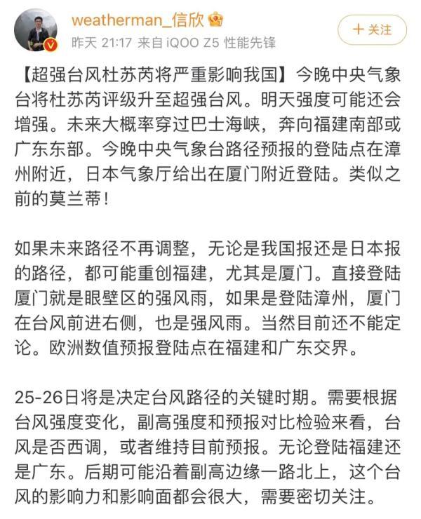 25-26日将是决定台风路径的关键时期。需要根据台风强度变化,副高强度和预报对比检验来看,台风是否西调,或者维持目前预报。无论登陆福建还是广东,后期可能沿着副高边缘一路北上,这个台风的影响力和影响面都会很大,需要密切关注。