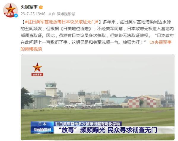 多年来,驻日美军基地污染周边水源的丑闻频发,但根据《日美地位协定》,不经美军同意,日本政府无权进入基地内部调查取证。因此,虽然有日本议员多次争取,但始终无法取证维权。“日本政府在此问题上一直敷衍了事,这明显是和美军沆瀣一气、狼狈为奸!”