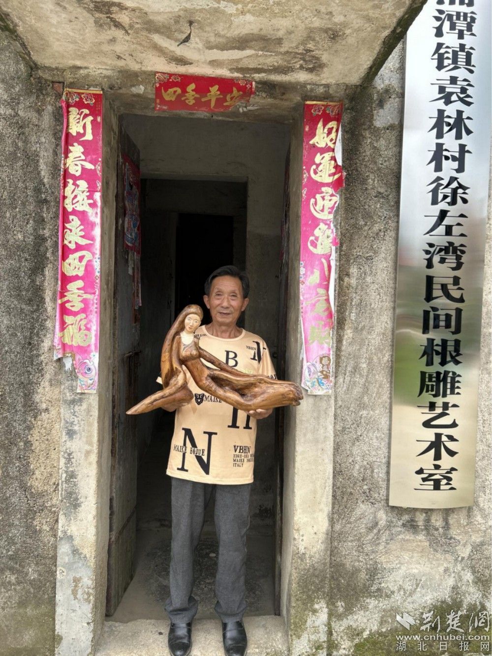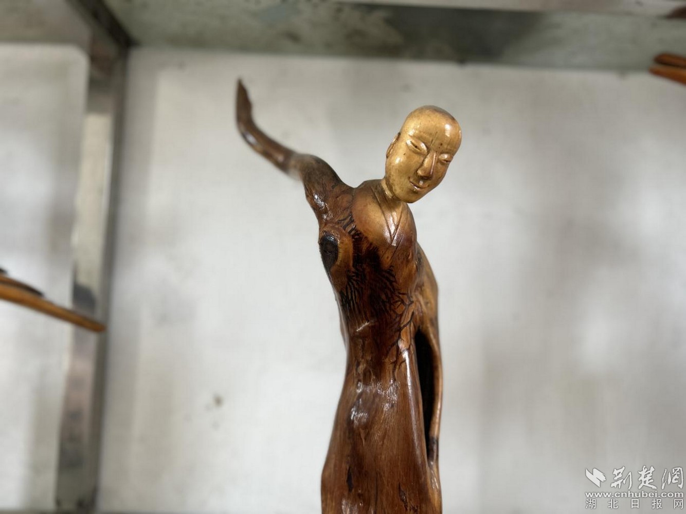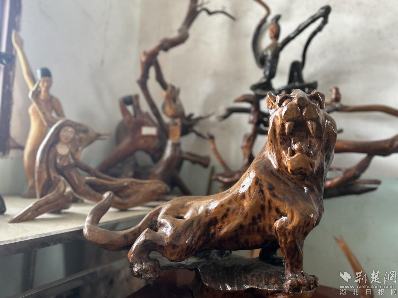 荆楚网(湖北日报网)讯(通讯员吴冲、曾程)灵动的小鹿、勇猛的老虎、达摩悟道、仙女飞天……一截枯树干、一段老树根,经过根雕师傅的妙手打磨,竟能变化成一件件别具韵味的艺术品。