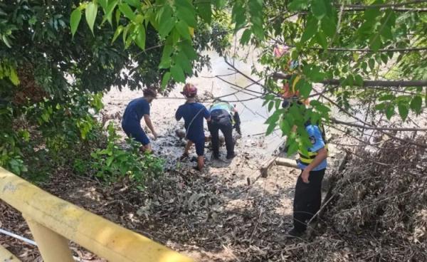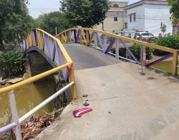 民众警方接报后立刻赶到现场,发现一辆红色摩托车倒在桥边,护栏上有着明显撞痕,一男子正躺在桥下干涸河床上的淤泥里。