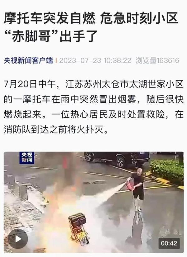 “当时我吃过中饭,正在阳台哄孙女睡觉,看到楼下摩托车着火,我想也没想,直接赤脚冲下去了。”