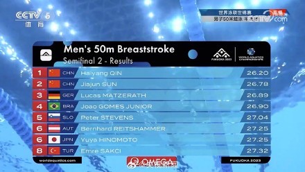 刚刚,2023世界泳联锦标赛男子50米蛙泳半决赛进行。中国选手覃海洋以26秒20的成绩再次打破亚洲纪录,半决赛第一晋级决赛;孙佳俊小组第二晋级。祝贺!决赛加油!