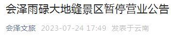 7月24日,会泽雨碌大地缝景区发布暂停营业公告。