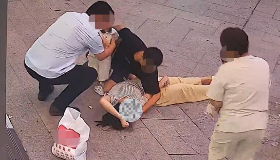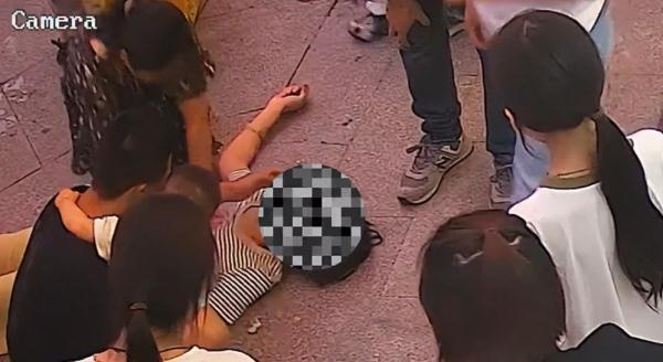 走出商场门口时突然倒地