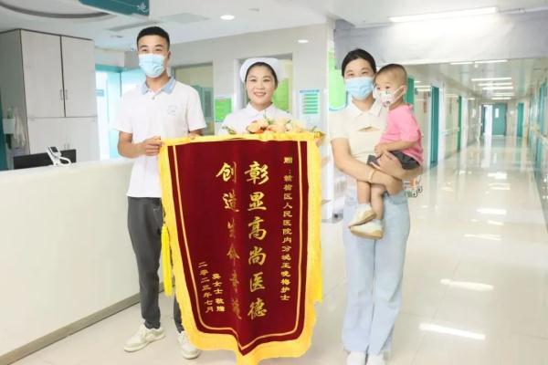 专程将锦旗和鲜花送给王晓梅护士
