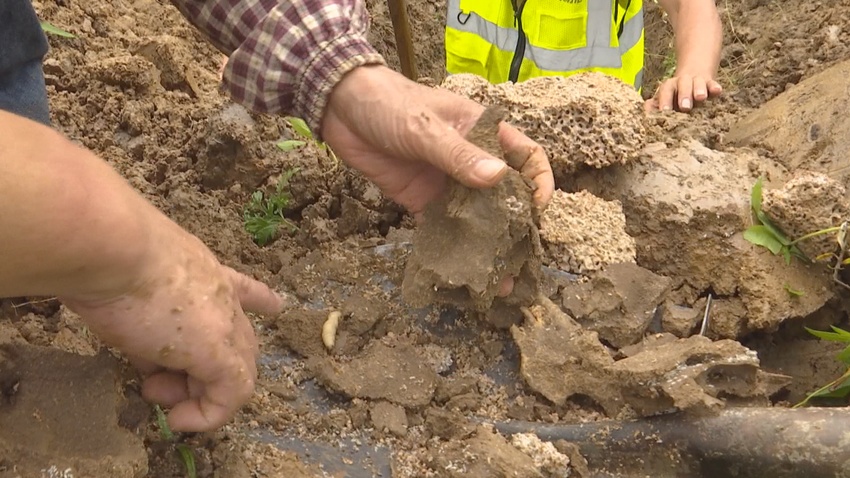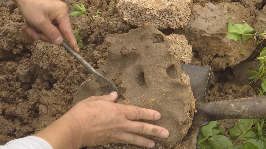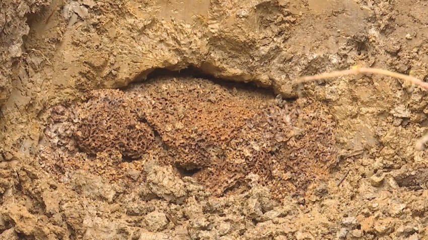 湖北日报客户端讯(通讯员盛丹、黄敏)“我们工人师傅通过白蚁它的活动痕迹,慢慢的找到这个堤,这是它栖息的地方,就是蚁巢。今天我们在云梦这个堤防上面挖的蚁巢窝槽离地面深度是在一米五多,窝槽直径55公分,刚才那个蚁王蚁后我们还没来得及量,但是目测大概五公分(左右)。”湖北省罗田县白蚁防治研究所业务主管邱红林介绍说。