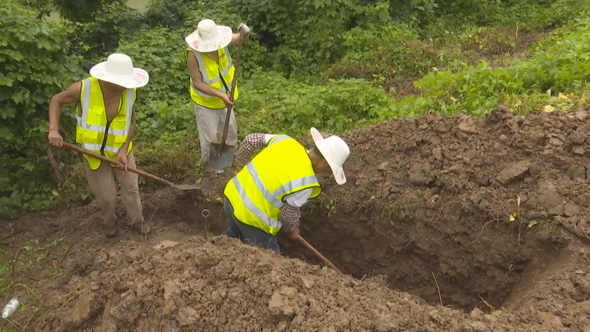 7月25日,在云梦县府河左堤沙河段白蚁防治工地上,湖北省罗田县白蚁防治研究所的同事们有的拿着铁锹,正在配合默契地清理蚁穴,有的蹲在地上观察被白蚁啃噬的树木,有的在喷洒灭蚁药物……