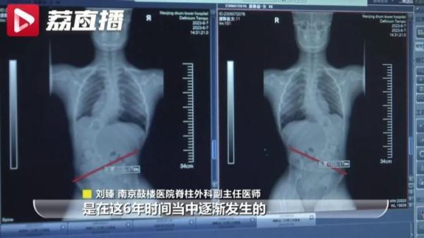 南京鼓楼医院脊柱外科副主任医师刘臻向记者介绍一位就诊的女孩:“这个女孩11岁,她是在5岁跳舞下腰的时候发生了瘫痪。这个孩子是即刻就发生了瘫痪,脊柱畸形骨盆倾斜是在这6年时间当中逐渐发生的,所以我们告诉她要去纠正脊柱畸形。”