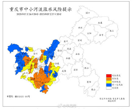 7月26日,重庆市气象局发布暴雨Ⅲ级预警,受高原涡和西南涡共同影响,预计26日夜间至28日白天,重庆西部地区暴雨天气持续,有暴雨到大暴雨,主要降雨时段为26日夜间至27日夜间。