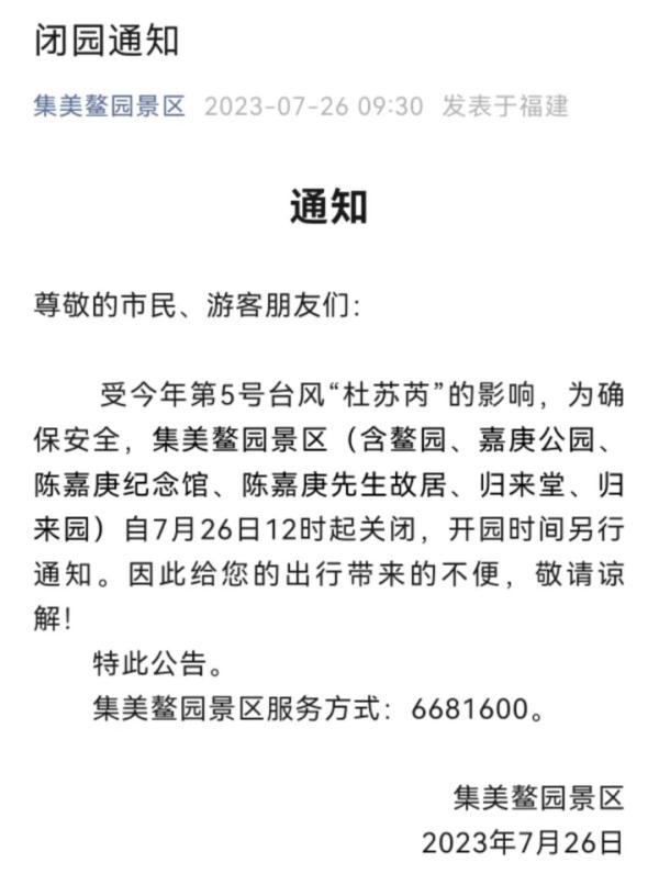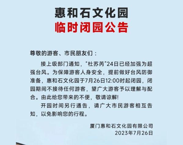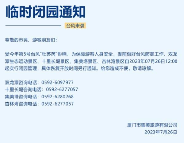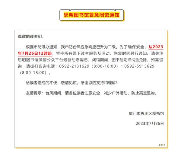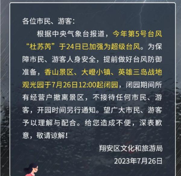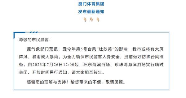 根据厦门市人民政府防汛抗旱指挥部通知,我市启动防台风Ⅱ级应急响应,各机构要高度重视台风“杜苏芮”可能对我市带来的重大影响,按照防御超强台风“莫兰蒂”的标准做好各项防范应对工作,严密细致全面排查隐患,强化细化各项应急处置,并密切关注当地气象台发布的灾害性天气预警信号。翔安区校外培训机构规范发展工作领导小组办公室经研究决定: