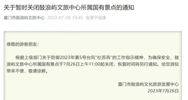 ✓ 文旅活动主办方加强风险研判和安全防范,对因受台风影响存在安全风险的应暂停举办或延期举办。