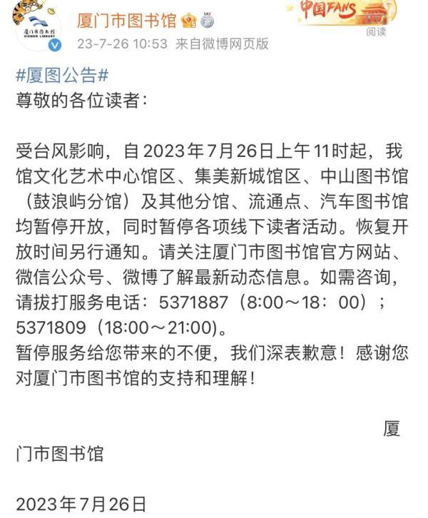 即日起,全区各中小学、幼儿园暂停组织夏令营、社会实践等集体活动,校园暑托班、校外培训机构(含少年宫)等线下培训一律暂停直至台风和暴雨警报解除。