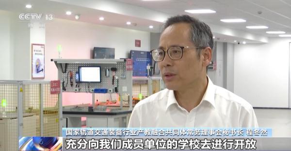 国家轨道交通装备行业产教融合共同体常务理事会秘书长 程冬然:把企业的资源充分向成员单位的学校开放,企业有一大批科技领军人才,有一大批大国工匠可以参与到学校当中的教学评估、课程开发、专业设置以及教学工作,学校可以组织老师到企业去参与研发工作,也可以组织学生到企业的实训基地,开展一些实习性教学。