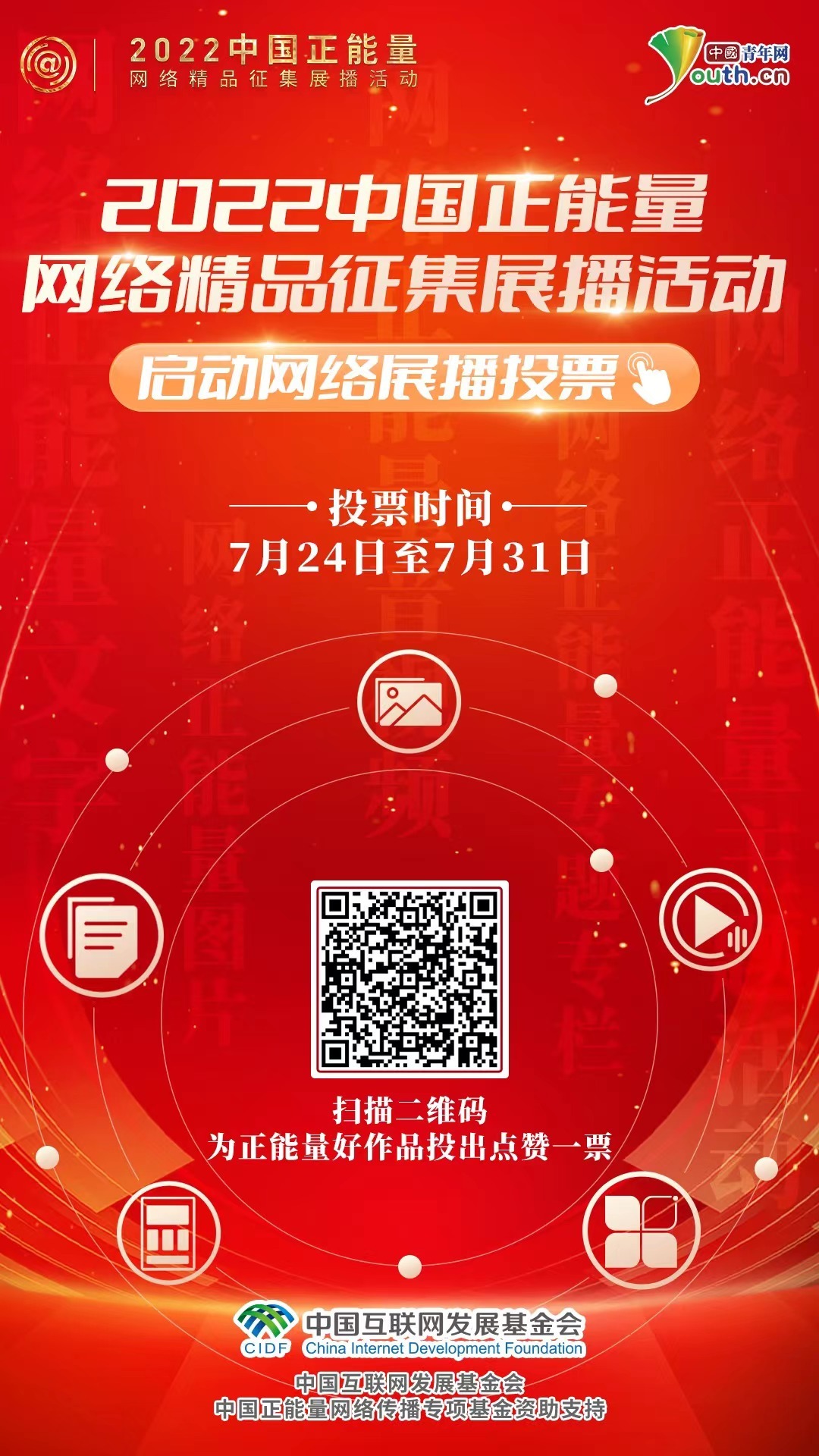 团结奋进新征程,同心奋斗创伟业。由中央网信办主办的2022中国正能量网络精品征集展播活动已正式启动网络展播投票。网络正能量文字、网络正能量图片、网络正能量音视频、网络正能量专题专栏、网络正能量主题活动,约1100件正能量好作品汇聚网络空间,欢迎广大网友扫描二维码关注作品、参与投票,让“大流量”澎湃正能量。(刘尚君潘晓文 朱钧有)
