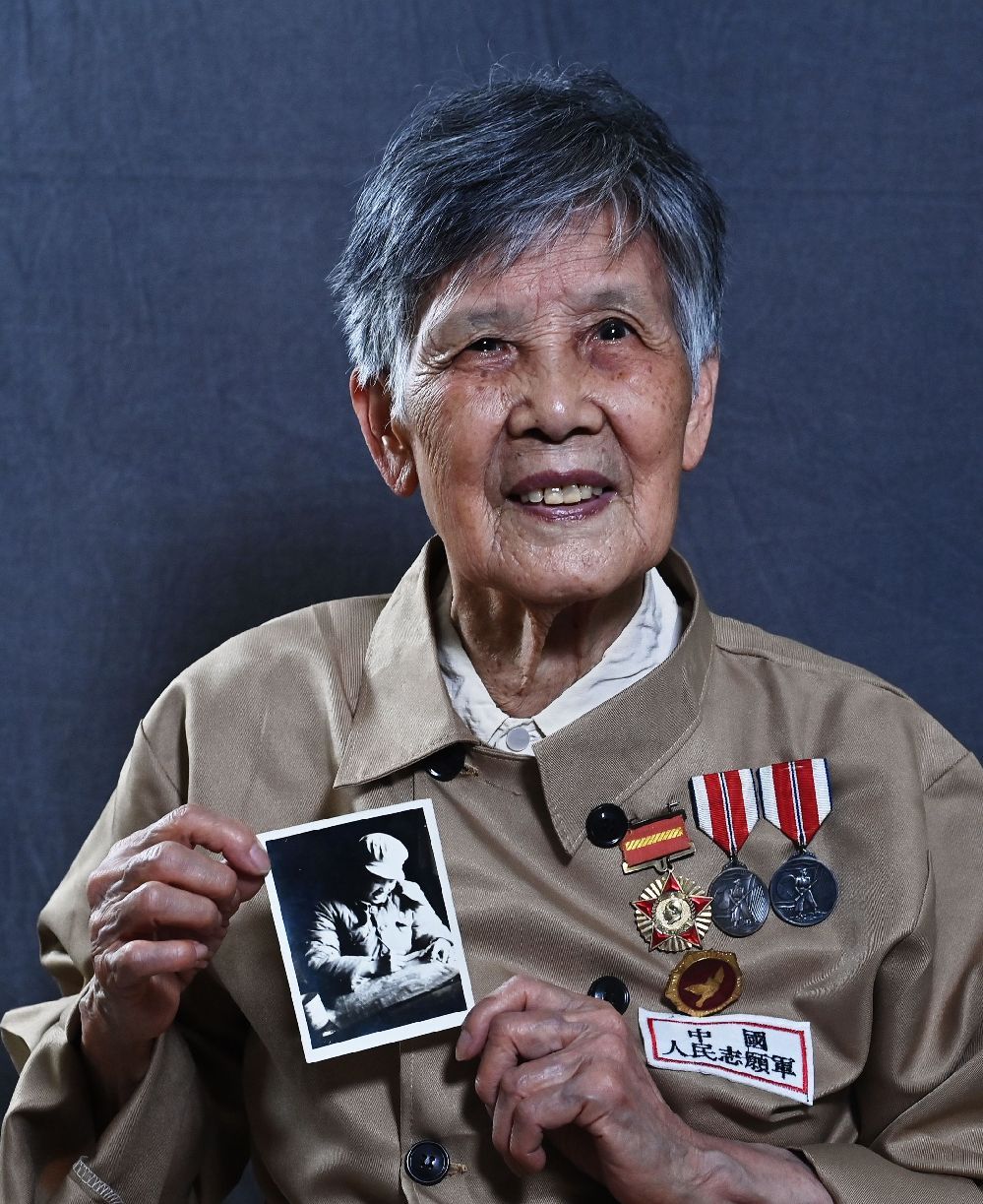 女,90岁,广东佛山人,1951年3月入朝。先后任中国人民志愿军15军后勤部文印员、电讯员。在入朝四年多时间里,她译电文、油印机要文件数千件,准确无误地将上级重要指示精神及时传递,无一差错,荣立三等功。