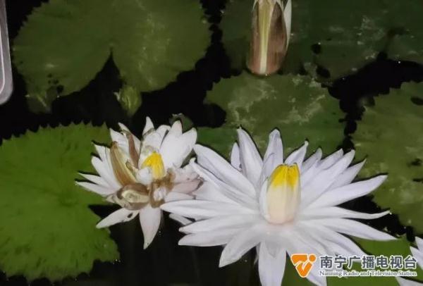 广西亚热带园林植物研究中心科研人员韦妙琴说:“喀麦隆睡莲单花的花期一般是三天左右,昨天晚上我们观测到‘三花并蒂’的睡莲已经打开了,接下来两天它还会持续开放。”
