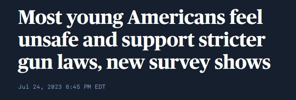 倡导枪支管制组织“为每个城镇带来枪支安全”(Everytown for Gun Safety)、美国南方贫困法律中心(Southern Poverty Law Center)以及美利坚大学(American University)两极化和极端主义研究与创新实验室(Polarization and Extremism Research and Innovation Lab)联合发布的这项调查涉及超过4100名年龄在14岁至30岁的美国人,结果显示,80%的人表示枪支暴力是美国存在的一大问题,多数人支持实施更严格的枪支管控法律。