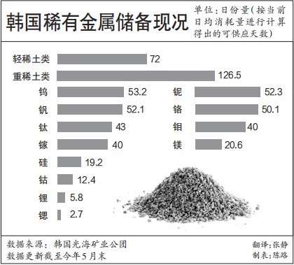 【环球时报驻韩国特约记者 张静】“资源战之下,韩国会是输家吗?”25日,韩国《东亚日报》以此为题,刊文盘点该国的稀有金属储备。该媒体称,2022年年底以来,韩国政府为应对供应危机,一直在想方设法完善稀有金属供应链,保障相关储备。然而事与愿违,其试图“保供”的包括锂、钴、镓等在内的重要稀有金属储备情况均不乐观。